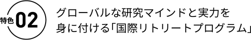 自然科学で世界に貢献するためには、グローバルな視点を持ち、英語を使って研究成果を発表する必要があります。「国際リトリートプログラム」は、グローバルな研究マインドと世界で通用する研究者としての実力を養うためのプログラムであり、卒業研究によって 得られた成果を海外の大学等で英語を使って発表し、海外の研究者とディスカッションすることができます。