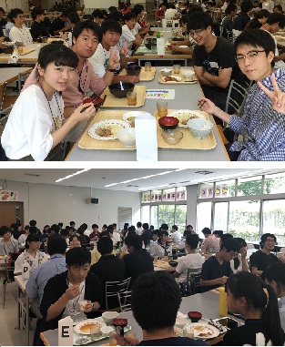学食(シーガル食堂)に移動して、参加者、先生、学生TAのみんなで一緒にランチタイム!!