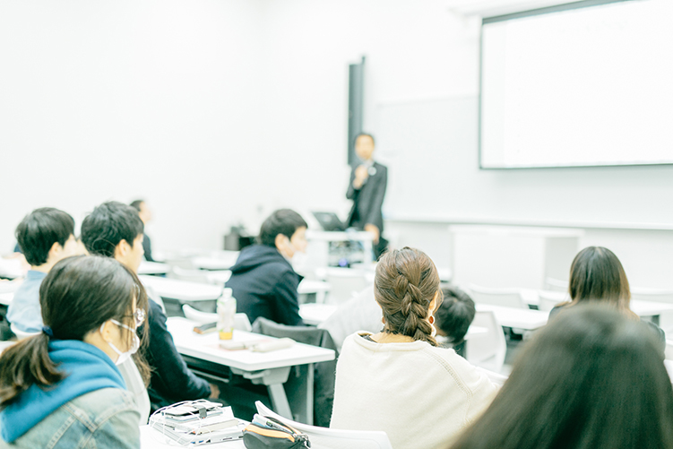 『キャリア・オリエンテーション』や『インターンシップ・キャリア教育プログラム説明会』、『業界研究入門』等のイベントでは、外部講師を招き、最新の業界動向を踏まえた就職活動に役立つ情報を発信しています。