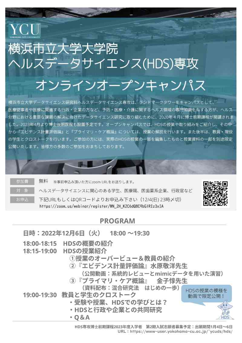 ヘルスデータサイエンス専攻 オンラインオープンキャンパスを12月6日(火)に開催します。