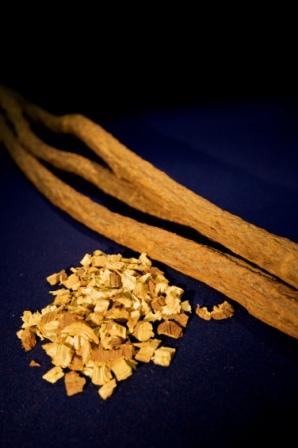 生薬として用いられる甘草根ときざみ(甘草根を刻んだもの)