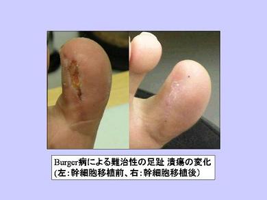 本研究は、近年激増する四肢の動脈硬化性疾患ならびに難病のひとつであるバージャー病に対して、自身の骨髄細胞由来の血管幹細胞を濃縮し、局所に注入することで不足する血管網を回復させ、既存の技術では治療することができない重症下肢虚血から回復させる最新の治療方法です。
