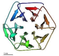 研究グループが2014年に設計・製造した、プロペラ型ファミリーと呼ばれるグループに属するタンパク質。完全6回回転対称型の構造を持ち、イタリア料理のピザに似ていることから、「ピザ型」と名付けた。