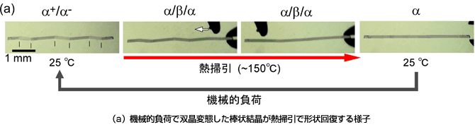 横浜市立大学生命ナノシステム科学研究科の高見澤 聡教授が、形状記憶合金(※1)特有の形状記憶効果を有機結晶で発現するのに成功しました。