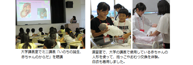 参加した小学生からは、「赤ちゃんの抱っことおむつ交換が面白かった」「大学の教室で講義を聞いたり、白衣を着る体験もできて楽しかった」といった意見が聞かれ、それぞれが大学生体験を楽しんだようです。