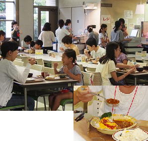 演習が終わると、学食に移動してランチ。メニューを選んでレジでお金を払い、大学生のキャンパスライフを味わいました。