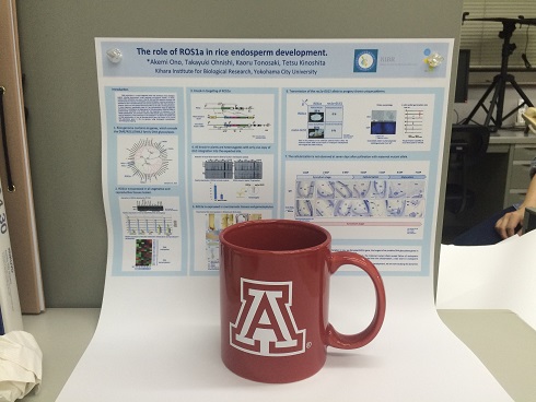 副賞として贈られたアリゾナ大学のマグカップとポスターのミニチュア版