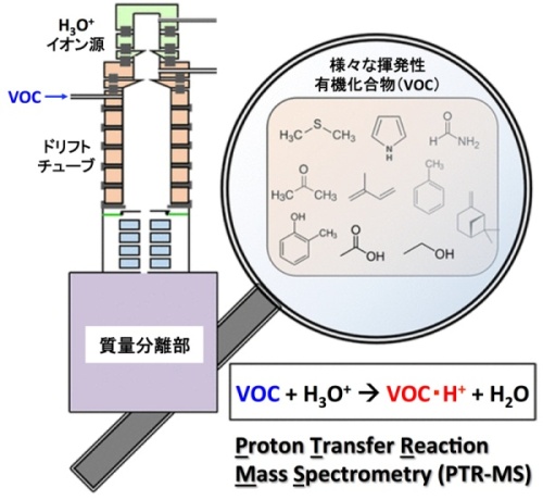 図2. プロトン移動反応質量分析法(PTR-MS)の概念図(掲載論文中Figure 1を改変)
