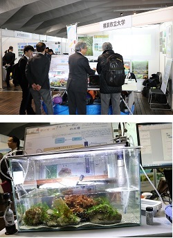 横浜市立大学のブースでは、海底調査の動画やパネルによる報告、海底の環境を再現した水槽による海草・海藻などがCO2を吸収し、海を浄化する様子の説明などを行い、多くの方に関心を持ってもらいました。