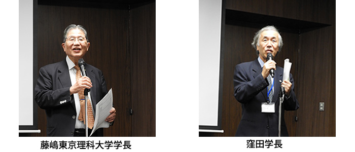 当日は、東京理科大学 藤嶋昭学長及び横浜市立大学 窪田吉信学長による開会挨拶から始まり、両大学研究者による13名の講演、研究者・大学院生らによる65件のポスター発表及び意見交換が行われました。