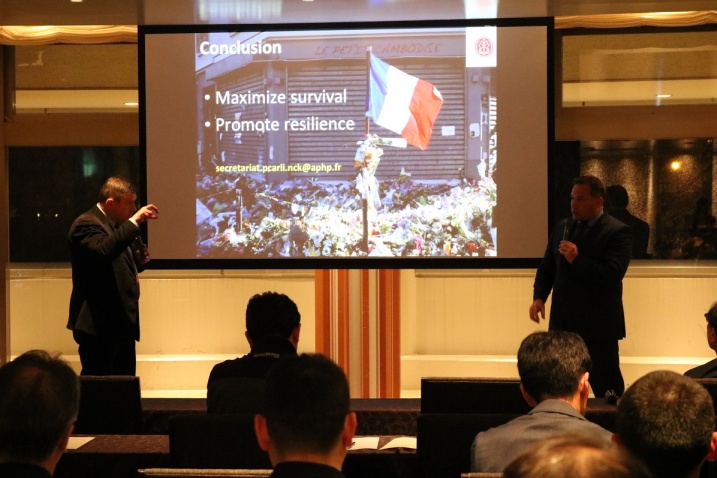 当セミナーでは、先進的な病院前救急医療で知られるフランスにおいて、数々の大規模災害において傷病者対応の指揮を執るピエール・カルリ先生をお迎えし、2015年に起こったパリ同時多発テロ事件における救急医療対応についてご教示いただきました。会場は、救急・消防分野の医療関係者や行政からの幅広い参加者でほぼ満席となり、救急・災害医療に対する関心の高さが伺えました。2020年に東京オリンピック・パラリンピックの開催を控える日本において重要な課題となる多数傷病者対応について知見を深めることができ、非常に有意義な講演会となりました。