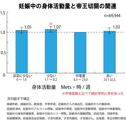 妊娠期身体活動量を約8万6千人の妊婦を対象に評価し、妊娠期間と分娩方法の検討を行ったのは世界で初めてであり、画期的な結果です。