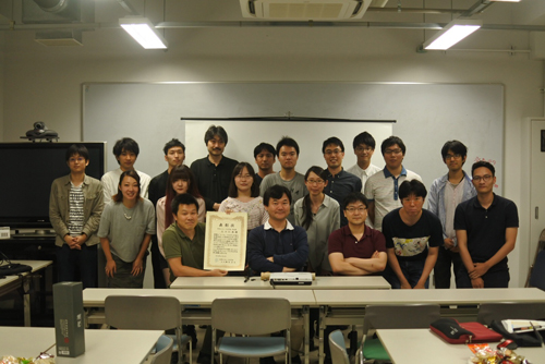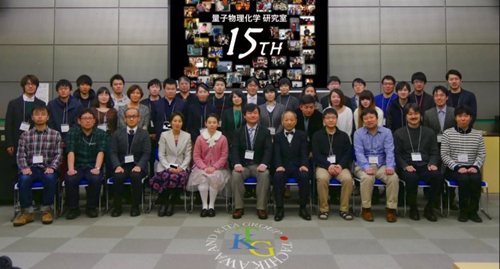 横浜市立大学にて量子物理化学研究室を主宰し、お陰様で15周年を迎えることができました(図3、図4)。普段あまり過去を振り返る余裕も無く、この15年間は、猪突猛進、とにかくがむしゃらに突き進んできた(進んでいる)というのが正直なところです。これまで11名のスタッフおよび50名の学生に恵まれ、34名の修士と5名の博士を産官学に輩出してきました。研究室運営では横浜市大らしさを活かし、特に研究室全体のチーム力を重視して研究に切磋琢磨してきました。このような当研究室学生との共同研究こそが、本受賞の契機となったことは言うまでもありません。本学会賞の受賞者は立川となってはいるものの、心強いサポートをしてくれたスタッフや学生諸君による寄与が大きく、むしろ研究室チーム全体としての受賞であったことを改めて強調しておきたいと思います。