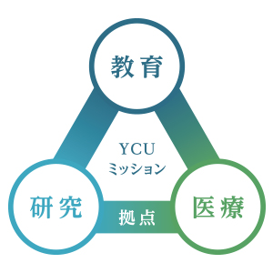 国際都市横浜とともに歩み、教育・研究・医療分野をリードする役割を果たすことをその使命とし、社会の発展に寄与する市民の誇りとなる大学を目指す