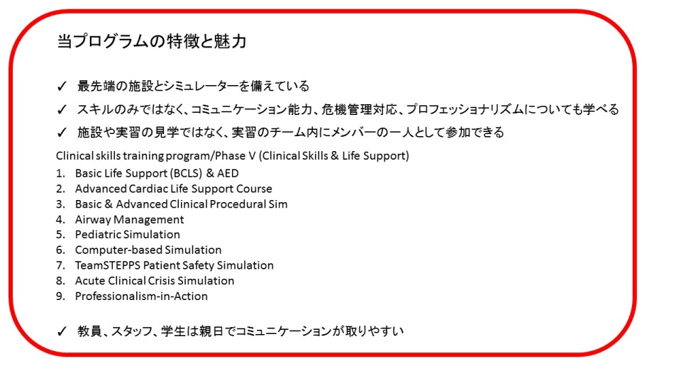3 研修内容 シンガポール国立大学における正規カリキュラムであるシミュレーショントレーニングプログラムにシンガポール国立大学の学生と共に参加します。