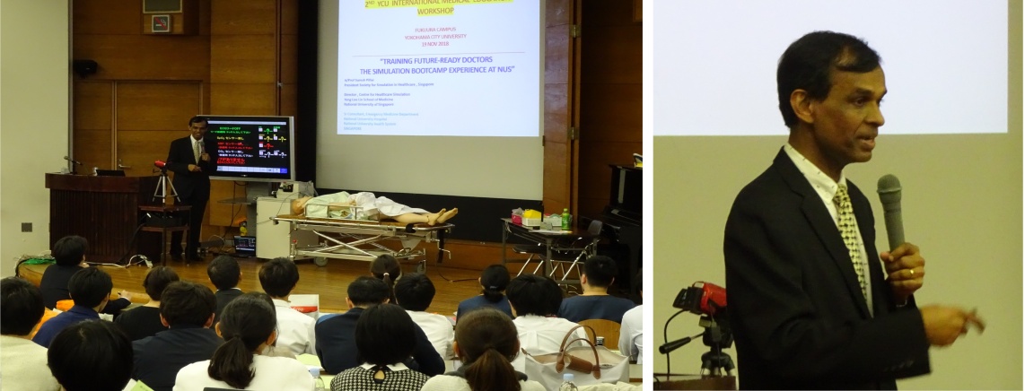 2回目の開催となる今回のワークショップでは「シミュレーション教育」に焦点をあて、先進的かつ独創的な取組みを行っているシンガポール国立大学(以下、NUS)より当該分野でのオピニオンリーダーであるDr. Suresh Pillaiを招聘し、「Training Future-Ready Doctors-The Simulation Bootcamp Experience at NUS」と題し、世界標準のシミュレーション教育をご紹介いただきました。