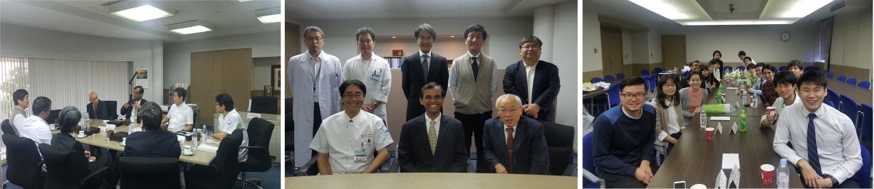 医学部長室ではDr. Suresh Pillai を囲んで益田医学部長を始め、遠山倶進会会長、石川医学群長、中島グローバル推進部門長、稲森医学教育学教授、秋山シミュレーションセンター長、小坂先生が同席されました。