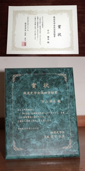 この度、鉄道史学会住田奨励賞という名誉ある賞を頂くことができ、光栄の限りです。