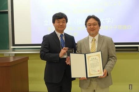 分子科学会会長・田原太平氏(右)から分子科学国際学術賞を授与される立川仁典教授(左)