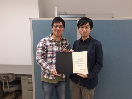 竹下君、坂上君、この度は国際会議でのベストプレゼンテーション賞のご受賞、誠におめでとうございます!
