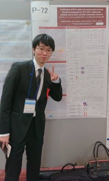 医薬品・化粧品開発等、新規化学物質の創製において、候補化学物質の「遺伝毒性」の有無を把握する手法が必要とされています。遺伝毒性は、時に突然変異の引き金となるため、癌や老化をはじめとした多くの疾患の要因となります。 本研究では、この遺伝毒性を引き起こす根本的な要因の1つである「DNA付加体」と呼ばれるDNAへの化学修飾に注目しました。DNA付加体を直接検出できれば、多くの化合物の遺伝毒性ポテンシャルを評価できるという考えのもと、化合物による付加体形成の有無と付加体化学構造を推定する方法論に重点を置き研究を実施しました。化合物によるDNA付加体形成の有無を判断するため、DNA付加体の網羅的解析法であるDNAアダクトーム法をヒト肝臓由来培養細胞に適用し実験を行いました。また、DNAアダクトーム法データを補完する手法として、細胞内RNAの損傷にも着目し、RNA付加体の網羅的解析法(RNAアダクトーム法)の適用を行いました。これら生体細胞を用いた手法に加え、DNA/RNAアダクトーム法で得られたデータから付加体構造を予測し、それをコンピューター上での量子化学計算により解析するという手段が用いられました。 発表では、いくつかの芳香族アミン化合物、多環芳香族炭化水素、かび毒を対象にした上記研究の結果を基に、遺伝毒性の根本原因をアダクトーム法により「直接検出・構造予測」を行い、量子化学計算で「説明する」組み合わせ手法の有用性について議論を行いました。