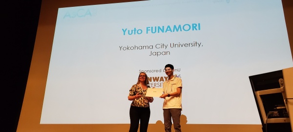 今回は、シンガポールで開催された国際会議における英語による口頭発表での受賞ということで、嬉しさもひとしおかと思います。 これも舟守くんの日頃のひた向きな研究活動によるものと思います。 大学院生活も残りわずかですが、悔いの残らないように精一杯頑張ってください。 今回のような受賞も含め研究室で培ったさまざまな経験は、就職してからも必ず役に立つと思います。