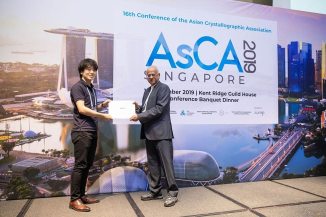 生命ナノシステム科学研究科物質システム科学専攻博士前期課程2年の舟守勇斗さん、理学部の鈴木凌助教が、2019年12月17日(火)~20日(金)にシンガポール国立大学シンガポール校で開催された第16回アジア結晶学連合国際会議(AsCA 2019)で研究発表を行い、表彰されました。