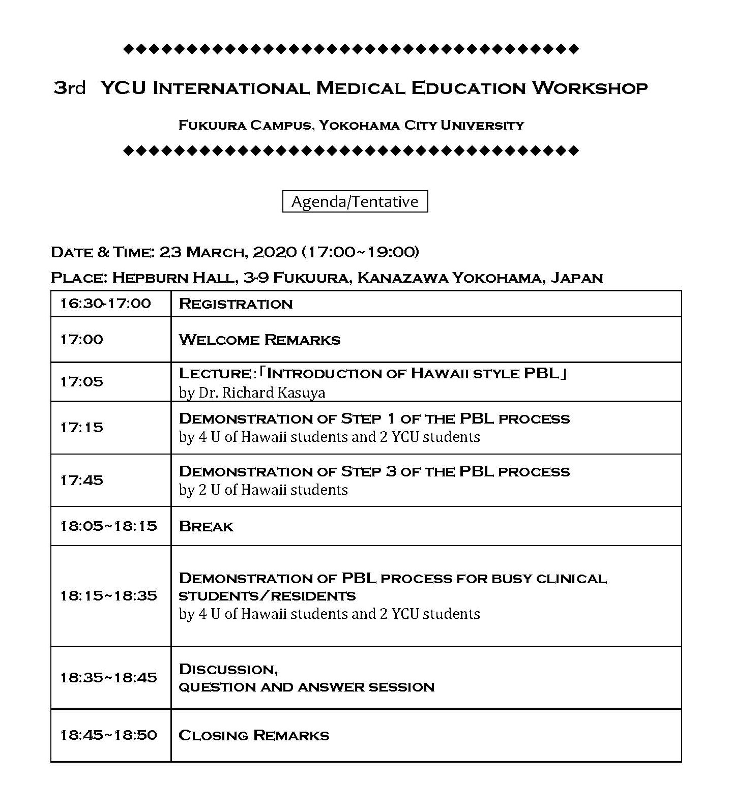 18:15-18:35 Demonstration of PBL process for busy clinical students/residents