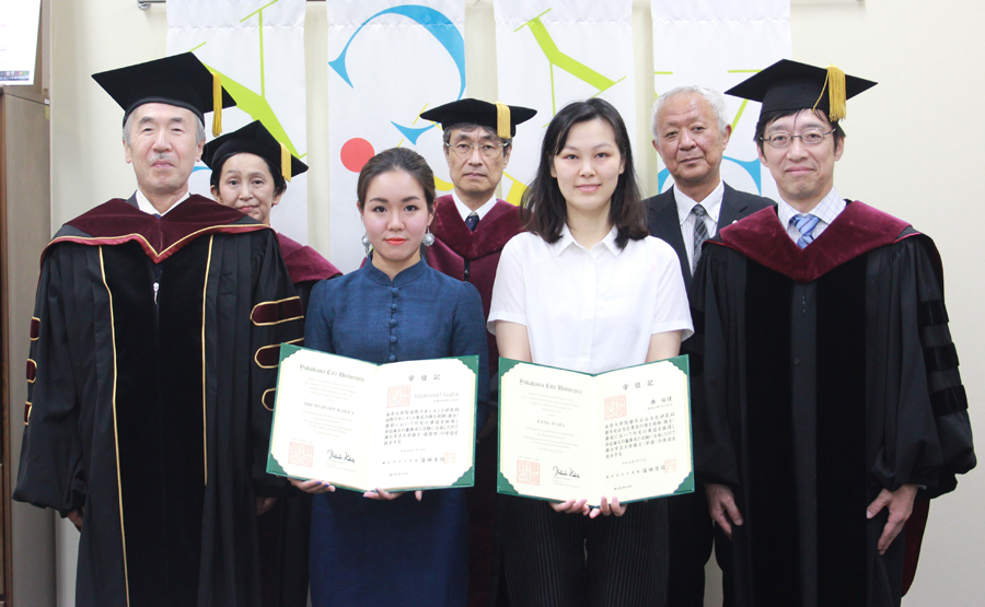 また、お二人は謝辞として指導にあたった先生方への感謝の気持ちを述べるとともに、「今後は、YCUで学んだことを生かして社会人として頑張りたい」「YCUで学べたことを誇りに思う」と述べました。