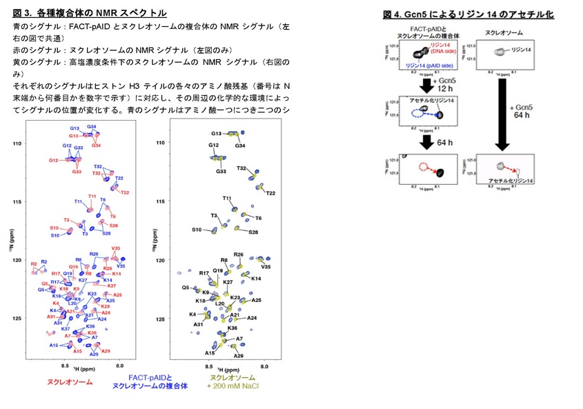そこで我々は、動的構造解析が可能な高磁場NMR分光器*3を用いて、FACTがヌクレオソームのヒストンテイルの動的構造をどのように変化させ、クロマチン構造変化に導いているのかを明らかにしました。