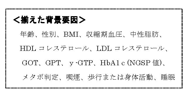 今回の分析では、①単に現状でのYWP事業参加・非参加による生活習慣病有病率等を比較するのでなく、対象を生活習慣病を発症していない人に限定し、その後3年間の参加・非参加での生活習慣病新規発症率を比較していること、②アンケートではなく健診結果等の実際の数字を使用していること、がYWP事業の効果を正確に評価できる方法と考え、実施しました。