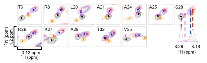 図2 ヌクレオソーム中のヒストンH4のN末末端のNMRスペクトル