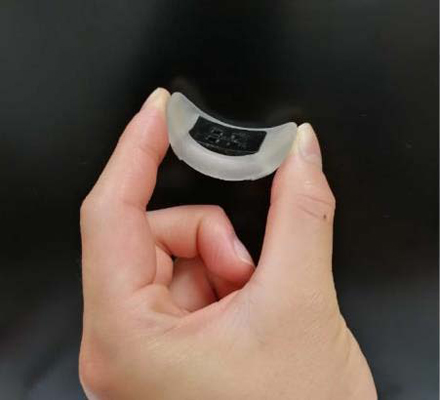 フレキシブル基板上に青・緑・赤・赤外LED、フォトダイオード(PD)、プロセッシング回路、Bluetoothモジュールを載せることでデバイスの基板を作製しました。この基板は折り畳みが可能であるため、折り畳むことで従来よりも小型化することができ、そのうえで、基板の周囲を柔らかいシリコーンゴムを主材として構成し、額との密着性を高めました。さらに、透明な柔らかいレンズをLED上に形成することによって新生児の皮膚に計測光を効率的に入射することができるようになりました。無線を使用し本デバイス1台を用いて商用の黄疸計及び新生児用パルスオキシメータと比較しました。また、本研究では従来の黄疸計では困難であった光療法中の経皮ビリルビン値の経時的計測を実証しました。