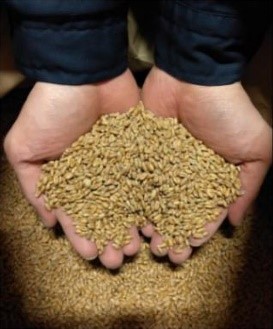 <麦の研究栽培の様子と製麦した小麦の麦芽>