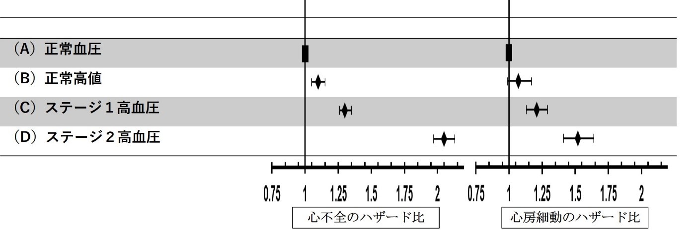 従来の高血圧診断基準より低い血圧値から心不全や心房細動のリスクが上昇