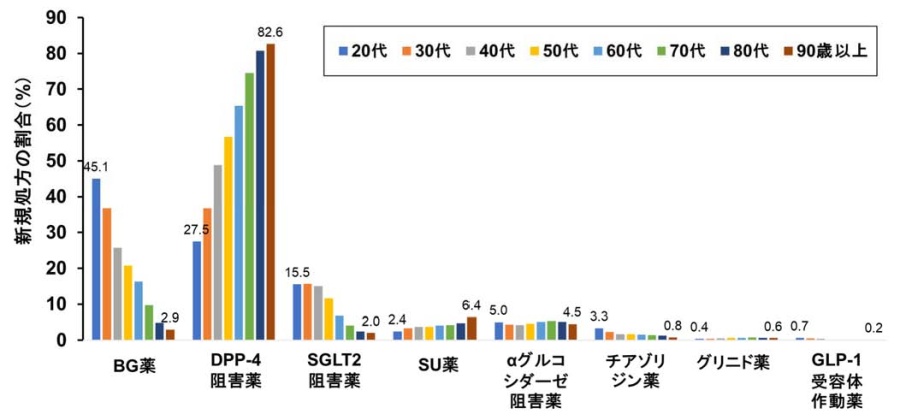 (図2)初回糖尿病薬処方選択の年代別の比較