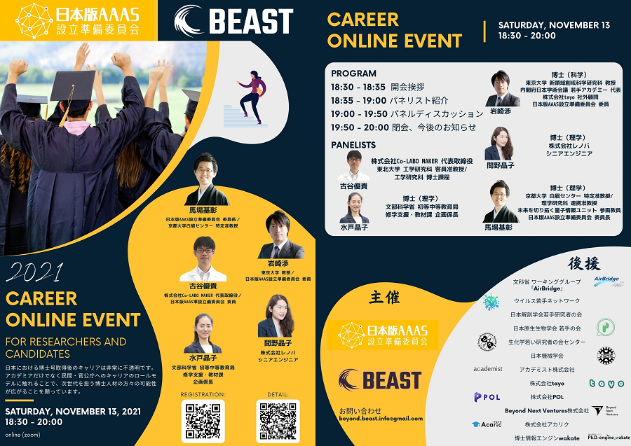 博士進学を考える学生向けに、YCU大学院生が運営に携わる 学生コミュニティ「BEAST」がCAREER ONLINE EVENTを開催します。
