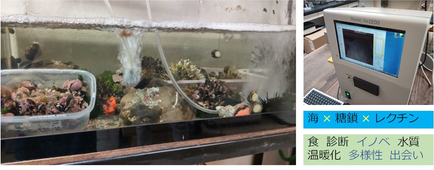 大関教授は、2021年より(株)グライコテクニカ*4と地域の特長を活かした共同研究を始め、生物多様性の宝庫である海の無脊椎動物から、疾患に関連する糖鎖構造を選び出すレクチンの探索方法の研究開発に取り組んでいます。