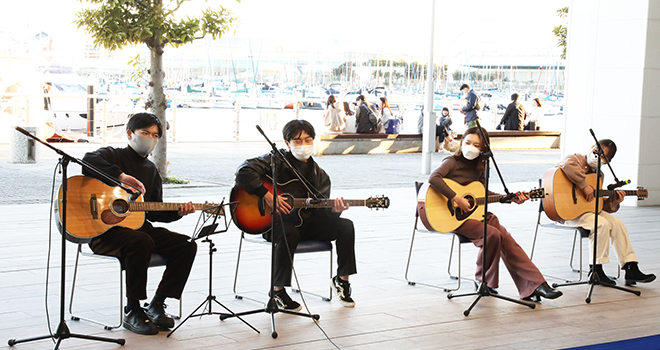 週1回アコースティックギターの練習を行っている「ギター部」が登場。今回は4人のメンバーが、アコースティックならではの繊細でナチュラルな音を奏で、観衆を惹きつけていました。
