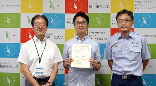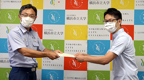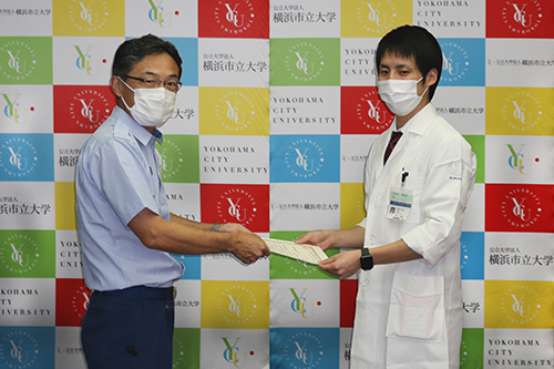 附属病院の医師(荒川裕和さん)と市民総合医療センターの看護師(田中建詞さん)が電車内で意識を失い心肺停止になった男性に対し、適切な心肺蘇生措置を行ったとして、8月20日に横浜市消防局港南消防署長から感謝状が贈呈されました。