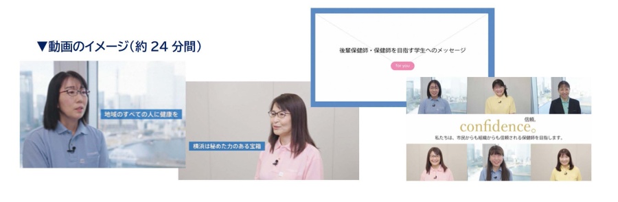 - 保健師養成校等にDVDを配布し、学生の頃から横浜市保健師の魅力を知っていただきます。