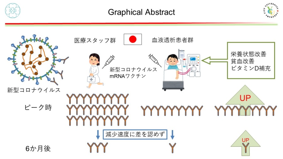 さらに、血液透析患者において、ワクチン接種時に、栄養状態や貧血の改善、ビタミンDの補充が抗体獲得反応の向上に寄与する可能性を明らかにしました。