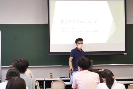 教養ゼミは、専門分野の違う2人の教員が担当して行われる、共通教養「技法の習得科目群」のゼミ科目です。学部の壁をなくし、異なる学部の学生同士が同じクラスになり授業を行います。これから大学で学んでいくために必要なプレゼンテーションのやり方やレポートの作成方法など基礎的なことを学べるYCUの特徴的な授業のひとつです。