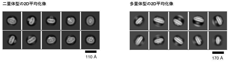 図2. SARS-CoV-2 Mタンパク質のクライオ電子顕微鏡2D平均化像