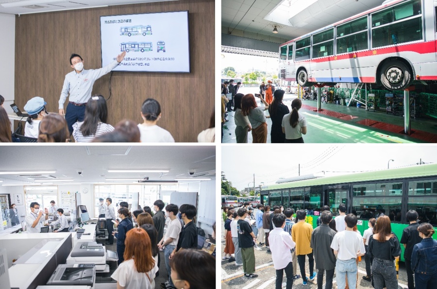 特にフィールドワークでは、普段は見ることができない乗務員の点呼、整備場の見学、ラッピングバスを施す車両見学の他、東急バスの歴史についての講義などを通じて理解を深めていきました。