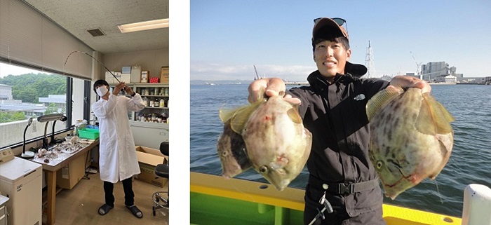 石渡さんは、2023年4月より本学大学院へ進学し、釣り活動と共に、海の動物の糖鎖とレクチンに関する研究を続けます。