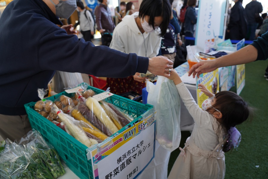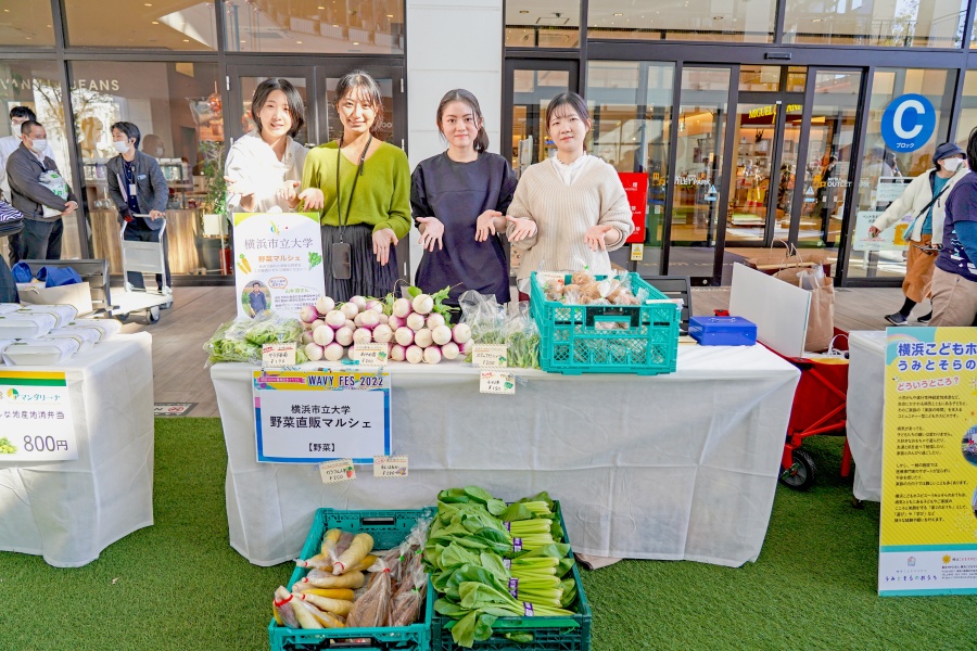 2022年11月27日(日)に三井アウトレットパーク 横浜ベイサイドにて金沢シーサイドFMの開局記念イベント「WAVY FES(ウェイビーフェス) 2022」が実施され、会場では市大生が新鮮野菜の直販を行いました。