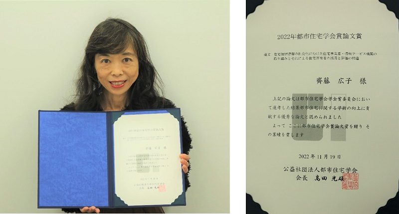 国際教養学部・都市社会文化研究科 齊藤広子教授は、2021年度に続き、2022年都市住宅学会賞論文賞を受賞し、2年連続の受賞になりました。