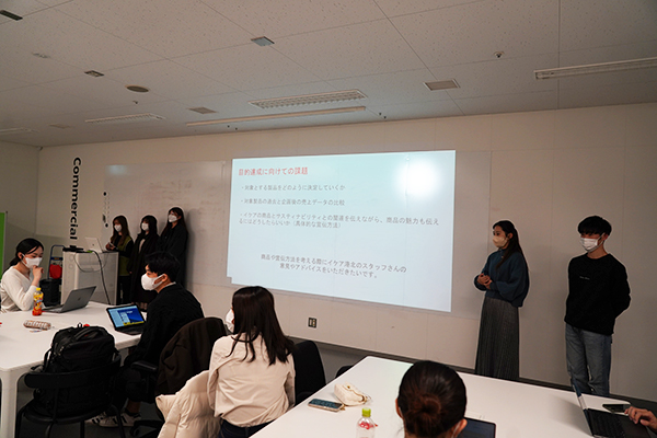 Local Marketing Managerの山下りえ様と、店内のルームセットを初め、商品の見せ方や、コミュニケーション全般を担当しているCommunication and Interior Design Managerの田中美加子様からも、「実際の体験談をプレゼンテーションに入れたのは良かった」「アイデア自体は面白い」などのコメントもありつつ、「ロジカルに提案内容を考えるまでは良かったが、その先の具体的な提案が無い、違う切り口でのアプローチもできたのではないか」といった提案内容に関するアドバイスがありました。さらに、「お客様のことを一番に考えたら、その手法は嬉しいのか」など、顧客目線で考える大切さについても、企業側ならではの目線でアドバイスをいただきました。