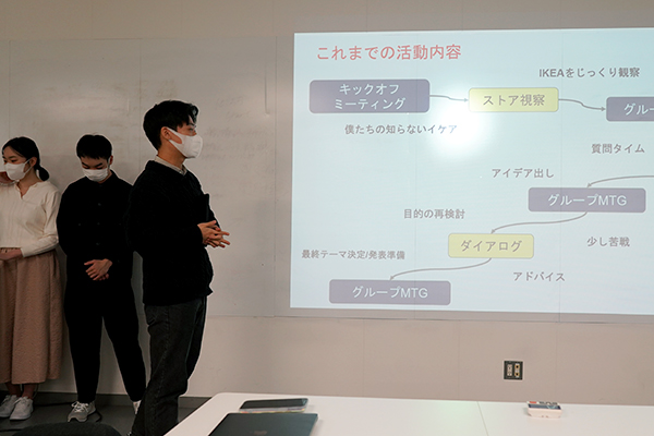 2022年の秋より始まった本プロジェクトは、IKEA港北に全面協力いただき、店内見学やスタッフの方々とのダイアログ(対話)の中で、学生たちが自ら課題を見つけ、それに対する解決案を提案するというものです。本プロジェクトには、国際商学部の吉永崇史*1ゼミ(経営組織論)の学生13名と留学生の10名、合計23名が参加しています。